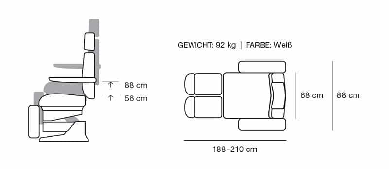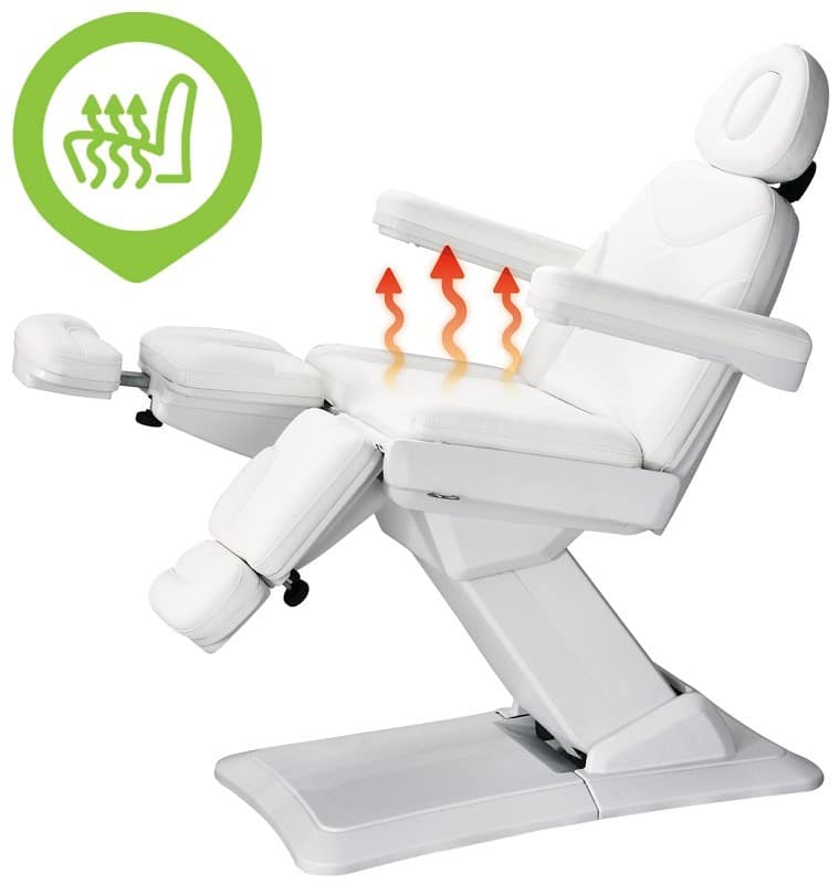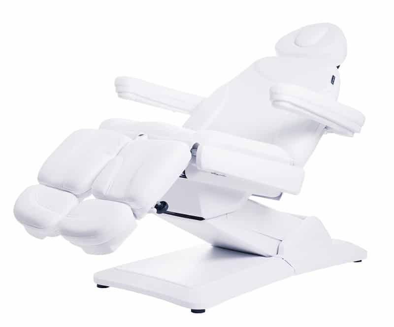 Unsere Fußpflegeliege Havanna ist eine Innovation. Sie verfügt neuerdings über drei Linak©Motoren, welche die Höhe, die Sitzneigung und die Rückenlehne verstellbar machen. Die Beinstützen sind nicht nur getrennt voneinander bewegbar, sondern bewegen sich automatisch nach oben, wenn die Rückenlehne gesenkt wird – die finale Position der Liege ist also auf Wunsch völlig waagerecht. Diese Liege ist nicht nur für Fußpflege sondern auch für Kosmetikbehandlungen bestens geeignet und somit ein absolutes Allroundtalent. Zusätzlich sind der Kopf- und Fußteil verstell- und ausziehbar. Die Liege lässt sich mühelos reinigen und ist durch ihre hochwertig verarbeitete Softpolsterung sehr komfortabel. Die inkludierte Sitzheizung steigert das Wohlbefinden der Kunden zusätzlich während der Anwendung.
